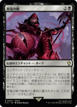 エンチャント(クリーチャー)エンチャントしているクリーチャーは、飛行と接死を持ち基本のパワーとタフネスが4/2である黒のドラゴンであり、使嗾されている。(それは各戦闘で可能なら攻撃し、可能ならあなたでないプレイヤーを攻撃する。)邪竜の眼が戦場から墓地に置かれたとき、これをオーナーの手札に戻す。