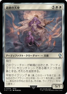 飛行このクリーチャーが戦場に出たとき、アーティファクトやエンチャントである最大2つを対象とする。それらを追放する。平地サイクリング