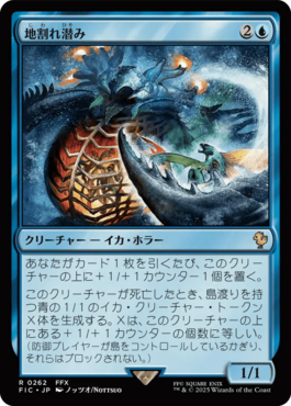あなたがカード1枚を引くたび、このクリーチャーの上に+1/+1カウンター1個を置く。このクリーチャーが死亡したとき、島渡りを持つ青の1/1のイカ・クリーチャー・トークンX体を生成する。Xは、このクリーチャーの上にある+1/+1カウンターの個数に等しい。(防御プレイヤーが島をコントロールしているかぎり、それらはブロックされない。)