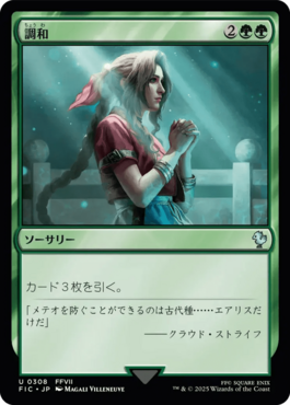 HOME > PRODUCTS > カードギャラリー > マジック:ザ・ギャザリング——FINAL FANTASY 統率者 CARD GALLERY 『マジック:ザ・ギャザリング——FINAL FANTASY 統率者』のカード 《調和》 Sorcery カード3枚を引く。 「メテオを防ぐことができるのは古代種……エアリスだけだ」 ――クラウド・ストライフ Draw three cards. カードテキストは印刷カードのテキストをもとにしています。 『マジック:ザ・ギャザリング——FINAL FANTASY 統率者』のカード一覧