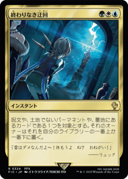 呪文や、土地でないパーマネントや、墓地にあるカードである1つを対象とする。それのオーナーはそれを自分のライブラリーの一番上か一番下に置く。