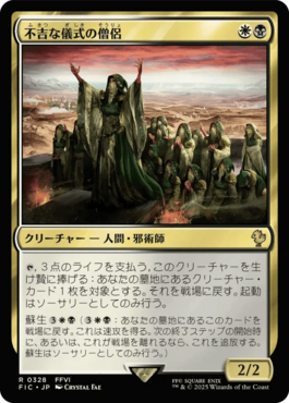 :あなたの墓地にあるこのカードを戦場に戻す。これは速攻を得る。次の終了ステップの開始時に、あるいは、これが戦場を離れるなら、これを追放する。蘇生はソーサリーとしてのみ行う。)