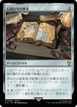 このアーティファクトはページ・カウンター1個が置かれた状態で戦場に出る。あなたの統率者が戦場に出るか攻撃するたび、このアーティファクトの上にページ・カウンター1個を置く。