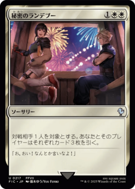 対戦相手1人を対象とする。あなたとそのプレイヤーはそれぞれカード3枚を引く。