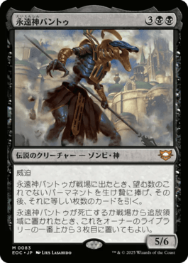 MenaceWhen God-Eternal Bontu enters, sacrifice any number of other permanents, then draw that many cards.When God-Eternal Bontu dies or is put into exile from the battlefield, you may put it into its owner's library third from the top.