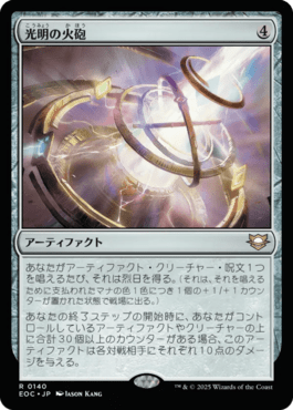 Whenever you cast an artifact creature spell, it gains sunburst. (It enters with a +1/+1 counter on it for each color of mana spent to cast it.)At the beginning of your end step, if there are thirty or more counters among artifacts and creatures you control, this artifact deals 10 damage to each opponent.