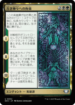 (As this Saga enters and after your draw step, add a lore counter. Sacrifice after III.)I - Destroy target nonland permanent an opponent controls.II - Search your library for a Forest card, put it onto the battlefield tapped, then shuffle.III - Creatures you control gain deathtouch until end of turn.