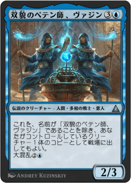 これを、名前が「双貌のペテン師、ヴァジン」であることを除き、あなたがコントロールしているクリーチャー1体のコピーとして戦場に出してもよい。