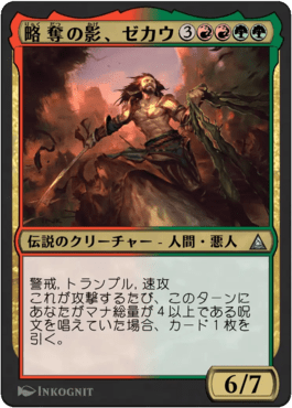 これが攻撃するたび、このターンにあなたがマナ総量が4以上である呪文を唱えていた場合、カード1枚を引く。