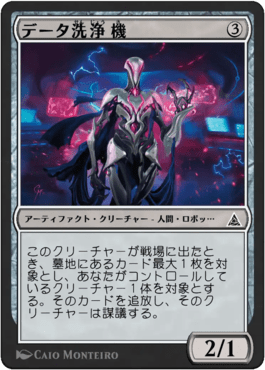 このクリーチャーが戦場に出たとき、墓地にあるカード最大1枚を対象とし、あなたがコントロールしているクリーチャー1体を対象とする。そのカードを追放し、そのクリーチャーは謀議する。