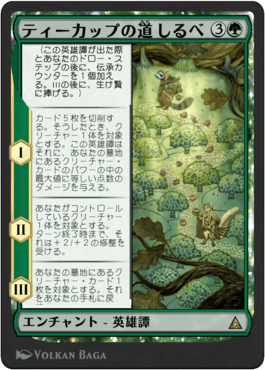 I - カード5枚を切削する。そうしたとき、クリーチャー1体を対象とする。この英雄譚はそれに、あなたの墓地にあるクリーチャー・カードのパワーの中の最大値に等しい点数のダメージを与える。