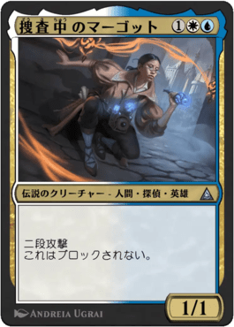 HOME > PRODUCTS > カードギャラリー > 領界路の彼方 CARD GALLERY 『領界路の彼方』のカード 《捜査中のマーゴット》 Legendary Creature - Human Detective Hero 1 / 1 二段攻撃 これはブロックされない。 Double strikeMargot can't be blocked. カードテキストは印刷カードのテキストをもとにしています。 『領界路の彼方』のカード一覧