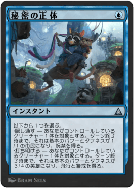 隠し通す- あなたがコントロールしているクリーチャー1体を対象とする。ターン終了時まで、それは基本のパワーとタフネスが1/1の市民になり、呪禁を得る。