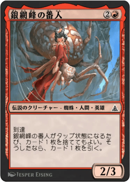 銀網峰の番人がタップ状態になるたび、カード1枚を捨ててもよい。そうしたなら、カード1枚を引く。
