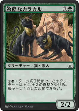 HOME > PRODUCTS > カードギャラリー > 領界路の彼方 CARD GALLERY 『領界路の彼方』のカード 《冷酷なカラカル》 Creature - Cat Villain 2 / 2 {2G}:ターン終了時まで、このクリーチャーは+2/+2の修整を受ける。毎ターン1回しか起動できない。 : This creature gets +2/+2 until end of turn. Activate only once each turn. カードテキストは印刷カードのテキストをもとにしています。 『領界路の彼方』のカード一覧