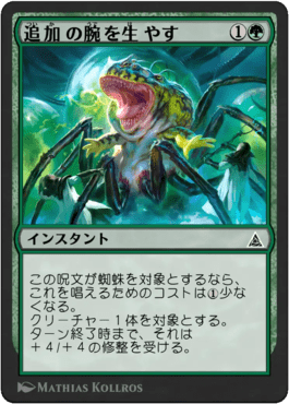この呪文が蜘蛛を対象とするなら、これを唱えるためのコストは{1}少なくなる。