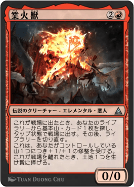 これが戦場に出たとき、あなたのライブラリーから基本山・カード1枚を探し、タップ状態で戦場に出す。その後、ライブラリーを切り直す。