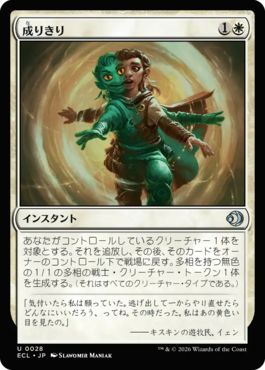 あなたがコントロールしているクリーチャー1体を対象とする。それを追放し、その後、そのカードをオーナーのコントロール下で戦場に戻す。多相を持つ無色の1/1の多相の戦士・クリーチャー・トークン1体を生成する。(それはすべてのクリーチャー・タイプである。)