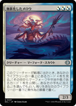 このクリーチャーが戦場に出たとき、あなたのライブラリーの一番上にあるカード4枚を見る。「その中からマーフォークや平地や島であるカード1枚を公開し、あなたの手札に加える。」を選んでもよい。残りをあなたのライブラリーの一番下に無作為の順番で置く。