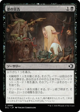 ・対戦相手1人を対象とする。そのプレイヤーは自分の手札を公開する。あなたはその中から土地でないパーマネント・カード1枚を選ぶ。そのプレイヤーはそのカードを捨てる。