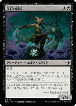 このクリーチャーが戦場に出たとき、カード2枚を切削する。(あなたのライブラリーの一番上にあるカード2枚をあなたの墓地に置く。)