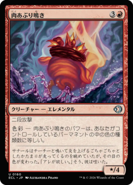 色彩 ― 肉あぶり鳴きのパワーは、あなたがコントロールしているパーマネントの中の色の種類数に等しい。