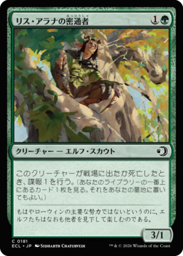 このクリーチャーが戦場に出たか死亡したとき、諜報1を行う。(あなたのライブラリーの一番上にあるカード1枚を見る。それをあなたの墓地に置いてもよい。)