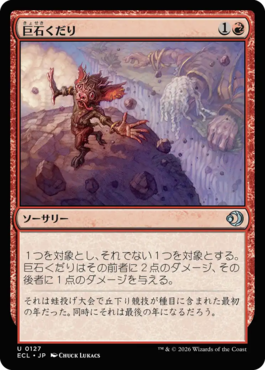 1つを対象とし、それでない1つを対象とする。巨石くだりはその前者に2点のダメージ、その後者に1点のダメージを与える。