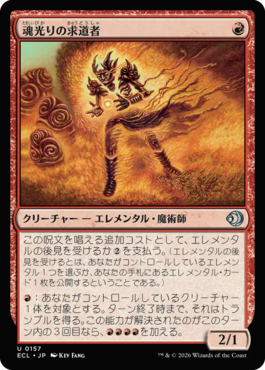 この呪文を唱える追加コストとして、エレメンタルの後見を受けるか{2}を支払う。(エレメンタルの後見を受けるとは、あなたがコントロールしているエレメンタル1体を選ぶか、あなたの手札にあるエレメンタル・カード1枚を公開することである。)