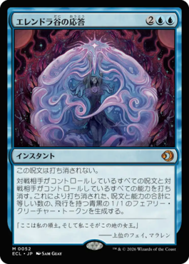 対戦相手がコントロールしているすべての呪文と対戦相手がコントロールしているすべての能力を打ち消す。これにより打ち消された、呪文と能力の合計に等しい数の、飛行を持つ青黒の1/1のフェアリー・クリーチャー・トークンを生成する。