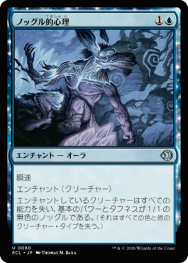 エンチャントしているクリーチャーはすべての能力を失い、基本のパワーとタフネスが1/1の無色のノッグルである。(それはすべての色と他のクリーチャー・タイプを失う。)