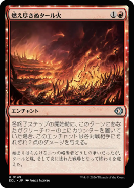 各終了ステップの開始時に、このターンにあなたがクリーチャーの上にカウンターを置いていた場合、このエンチャントは各対戦相手にそれぞれ2点のダメージを与える。