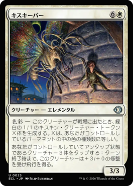 色彩 ― このクリーチャーが戦場に出たとき、緑白の1/1のキスキン・クリーチャー・トークンX体を生成する。Xは、あなたがコントロールしているパーマネントの中の色の種類数に等しい。