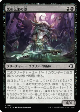 あなたがコントロールしていてこれでないクリーチャー1体が死亡するたび、諜報1を行う。その後、このクリーチャーの上から-1/-1カウンター1個を取り除く。(諜報1を行うとは、「あなたのライブラリーの一番上にあるカード1枚を見る。それをあなたの墓地に置いてもよい。」ということである。)