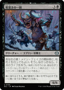あなたの第1メイン・フェイズの開始時に、枯朽2を行ってもよい。そうしなかったなら、3点のライフを失う。(枯朽2を行うとは、あなたがコントロールしているクリーチャー1体の上に-1/-1カウンター2個を置くことである。)