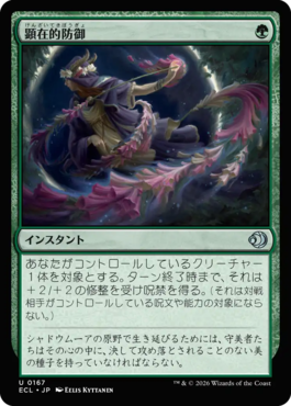 あなたがコントロールしているクリーチャー1体を対象とする。ターン終了時まで、それは+2/+2の修整を受け呪禁を得る。(それは対戦相手がコントロールしている呪文や能力の対象にならない。)