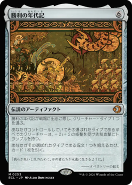 勝利の年代記が戦場に出るに際し、クリーチャー・タイプ1つを選ぶ。