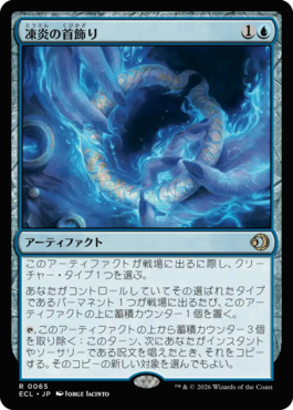 {T}, このアーティファクトの上から蓄積カウンター3個を取り除く:このターン、次にあなたがインスタントやソーサリーである呪文を唱えたとき、それをコピーする。そのコピーの新しい対象を選んでもよい。
