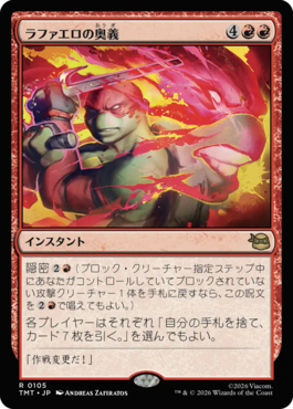 隠密{2R}(ブロック・クリーチャー指定ステップ中にあなたがコントロールしていてブロックされていない攻撃クリーチャー1体を手札に戻すなら、この呪文を{2R}で唱えてもよい。)