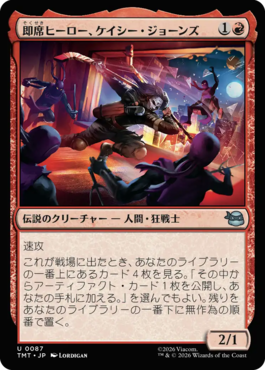 HasteWhen Casey Jones enters, look at the top four cards of your library. You may reveal an artifact card from among them and put it into your hand. Put the rest on the bottom of your library in a random order.