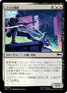 隠密{3(w/b)}(ブロック・クリーチャー指定ステップ中にあなたがコントロールしていてブロックされていない攻撃クリーチャー1体を手札に戻すなら、この呪文を{3(w/b)}で唱えてもよい。これはタップ状態かつ攻撃している状態で戦場に出る。)