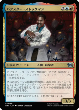 バクスター・ストックマンが戦場に出たとき、無色の1/1のロボット・アーティファクト・クリーチャー・トークン1体を生成する。