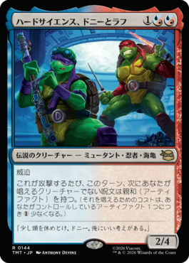 MenaceWhenever Don & Raph attack, the next noncreature spell you cast this turn has affinity for artifacts. (It costs