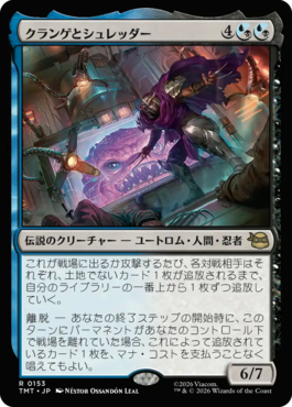Whenever Krang & Shredder enter or attack, each opponent exiles cards from the top of their library until they exile a nonland card.Disappear - At the beginning of your end step, if a permanent left the battlefield under your control this turn, you may cast a card exiled with Krang & Shredder without paying its mana cost.