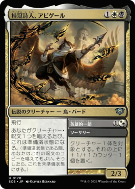 FlyingWhenever you cast a creature spell, Abigale becomes prepared. (While it's prepared, you may cast a copy of its spell. Doing so unprepares it.)//Prep//Heroic Stanza