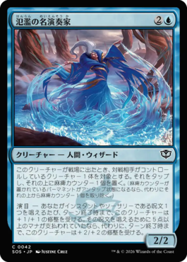 演目 ― あなたがインスタントやソーサリーである呪文1つを唱えるたび、ターン終了時まで、このクリーチャーは+1/+1の修整を受ける。その呪文を唱えるために5点以上のマナが支払われていたなら、代わりに、ターン終了時まで、このクリーチャーは+2/+2の修整を受ける。