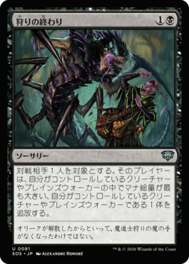 対戦相手1人を対象とする。そのプレイヤーは、自分がコントロールしているクリーチャーやプレインズウォーカーの中でマナ総量が最も大きい、自分がコントロールしているクリーチャーやプレインズウォーカーである1体を追放する。