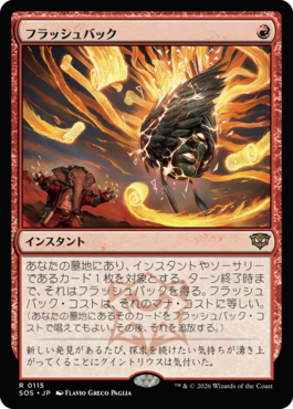 あなたの墓地にあり、インスタントやソーサリーであるカード1枚を対象とする。ターン終了時まで、それはフラッシュバックを得る。フラッシュバック・コストは、それのマナ・コストに等しい。(あなたの墓地にあるそのカードをフラッシュバック・コストで唱えてもよい。その後、それを追放する。)