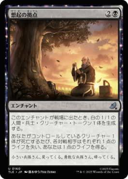 このエンチャントが戦場に出たとき、白の1/1の人間・兵士・クリーチャー・トークン1体を生成する。
