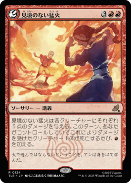 見境のない猛火は各クリーチャーにそれぞれ5点のダメージを与える。このターン、あなたがコントロールしていてこれによりダメージを受けたクリーチャー1体が死亡するたび、{R}を加える。